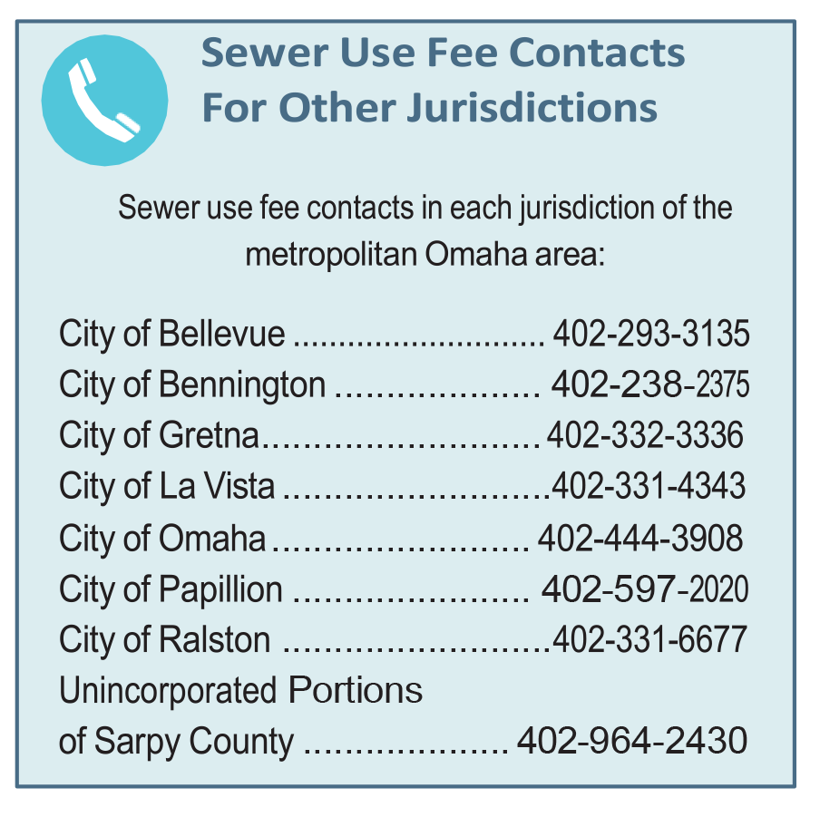 Questions on your bill, or on the City of Omaha’s wastewater collection and treatment system, call: City of Omaha Environmental Quality at 402-444-3908.
